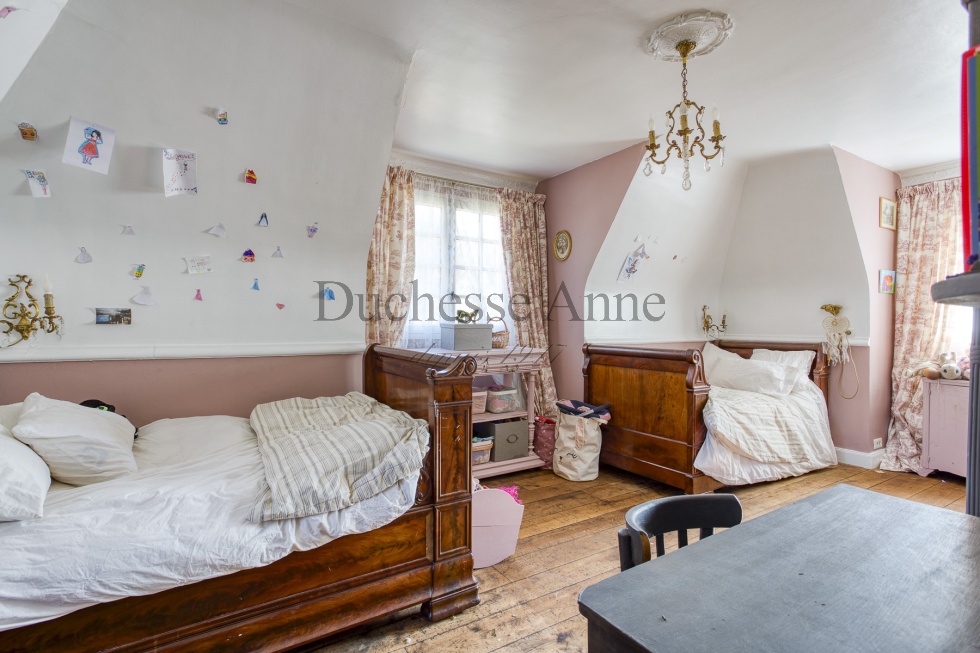 Etage: palier desservant 3 belles chambres (entre 15 et 18 m²), bureau, 2 salles de bains, wc.
