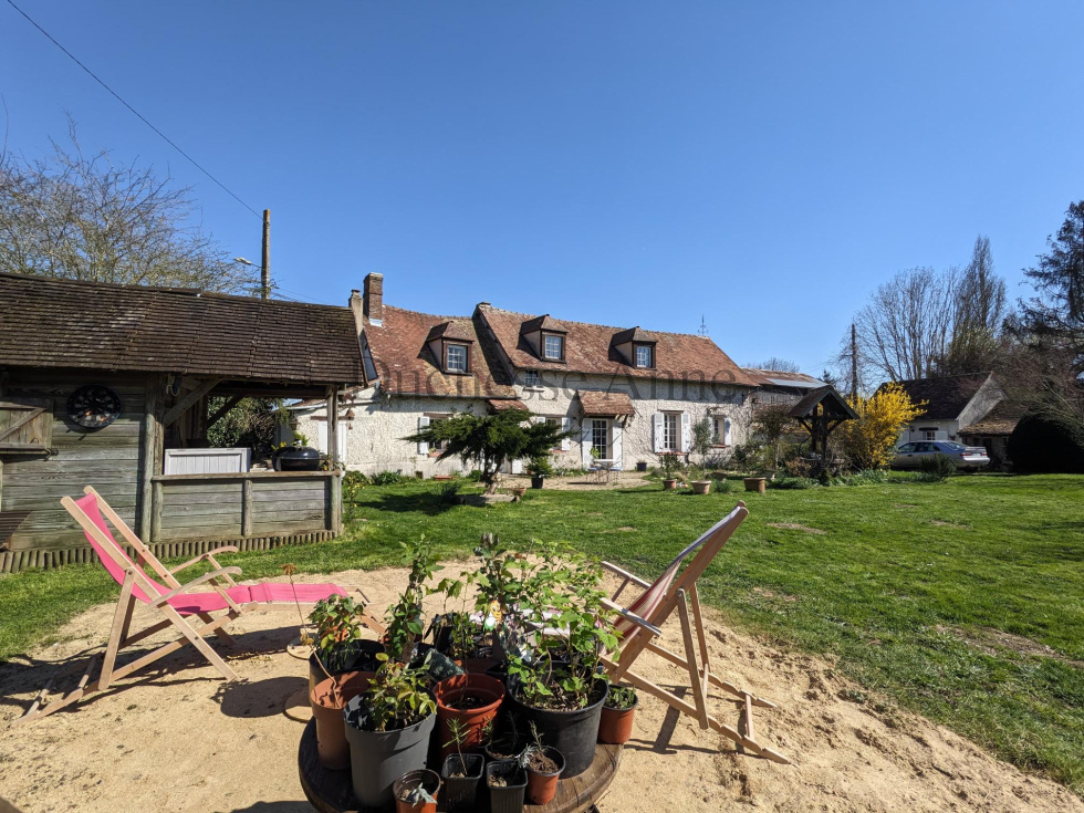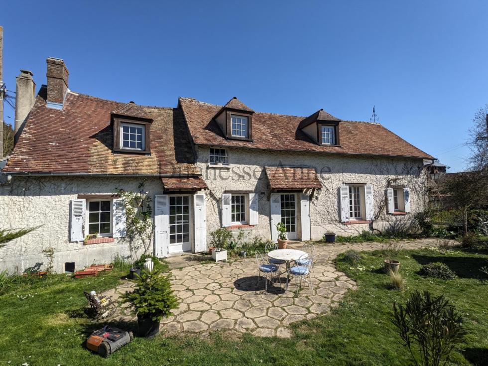 Maison de charme de 160 m² environ avec dépendances sur un terrain de 1234 m² environ. Beau séjour avec cheminée, cuisine ouverte sur salle à manger avec cheminée, chambre de plain-pied avec salle de bains (baignoire, douche et wc). A l’étage : grand palier vers 2 chambres salle d'eau et wc. Dépendances : maison d'amis, atelier, abris, chalet bois avec sauna et douche. Terrain de 1234 m² environ arboré avec puits. Beaucoup de lumière. Jolie maison de campagne à quelques minutes de Gambais