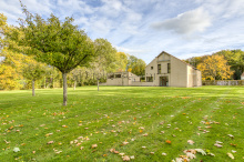 Dans la première bâtisse, vaste entrée, wc, plusieurs pièces de réception dont 2 grands salons avec cheminées (près de 50 m² et plus de 70 m²), cuisine séparée, espace parental de plain-pied possible. Plusieurs escaliers mènent à l’étage vers des couloirs et dégagements, 3 chambres, 2 salle de bains, 2 wc, espace bureau ouvert donnant au-dessus du grand séjour.