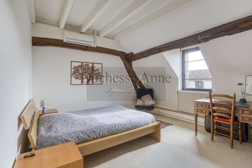 A l’étage, un palier distribue sur l’aile droite quatre chambres, une salle de bains avec douche, un wc et sur l’aile gauche un espace de 100 m² à aménager, parfait pour une suite parentale.