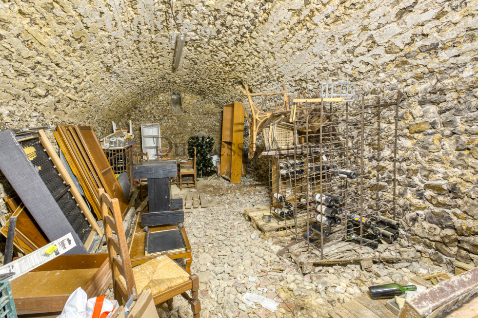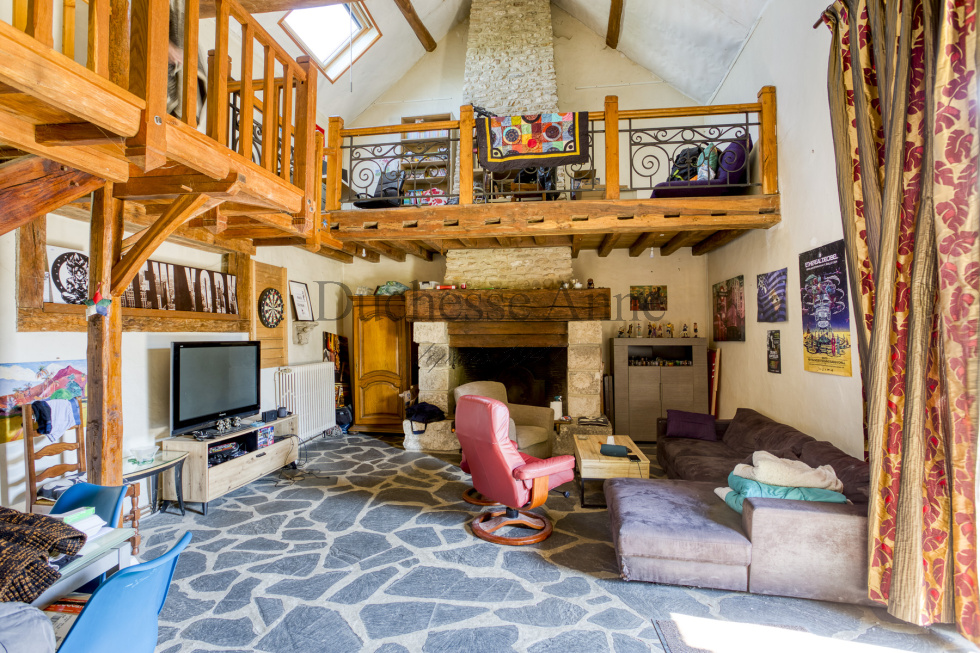 Située au calme en bordure de la campagne, maison ancienne de 97 m² environ comprenant en rez de chaussée une très belle pièce à vivre de 65 m² avec hauteur sous plafond (6.20 m) et cheminée, cuisine ouverte, salle de douche, wc avec espace buanderie. A l'étage: mezzanine/bureau, une chambre. Très belle cave ancienne - remises - garage 2 voiture + atelier. Cour pavée. Travaux à prévoir. IDEAL 1ER ACHAT.