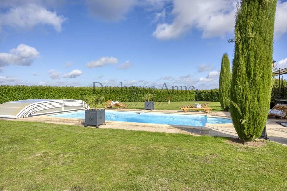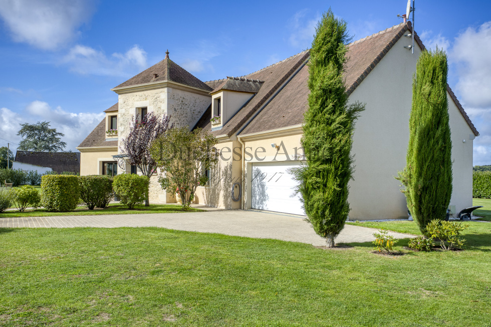 6 pièces • 3 chambres possible 4 • 205 m² • Terrain 5 200 m² - cadre de vie exceptionnel - Nichée aux portes du Perche et de la forêt, cette magnifique propriété bénéficie d'un emplacement privilégié à seulement 30 minutes de Chartres, 20 minutes de Dreux et 1 heure de Paris. Située dans un charmant hameau paisible à proximité du Golf du Bois d'O, elle offre le parfait équilibre entre tranquillité campagnarde et accessibilité urbaine. Une demeure de caractère sur un écrin de verdure Cette maison d'exception de 205 m² s'épanouit au cœur d'un magnifique jardin clos de 5 200 m², créant un véritable havre de paix. Rez-de-chaussée : l'art de vivre à la française - Entrée majestueuse avec vestiaire et toilettes invités - Cuisine moderne entièrement équipée avec électroménager intégré et îlot central fonctionnel - Salon-salle à manger convivial sublimé par une cheminée à foyer ouvert, parfaite pour les soirées hivernales - Suite parentale raffinée avec salle de bains privative et dressing attenant Toutes les pièces baignent dans la lumière naturelle grâce aux généreuses baies vitrées qui s'ouvrent sur une vaste terrasse aménagée. Celle-ci se prolonge harmonieusement vers une piscine sécurisée de 8x4 mètres, chauffée par pompe à chaleur pour une utilisation prolongée. À l'étage : un espace nuit préservé Accessible par un élégant escalier en pierre orné d'une rampe en fer forgé : - Mezzanine offrant un espace modulable - Deux grandes chambres lumineuses et spacieuses - Salle de bains avec toilettes Espaces de rangement et annexes - Sous-sol intégral de 100 m² accessible uniquement depuis l'intérieur - Double garage attenant avec grenier aménageable Confort et sécurité optimaux Cette propriété bénéficie d'équipements haut de gamme : - Volets électriques sur toutes les ouvertures - Système d'alarme intérieur et extérieur - Chauffage central au gaz (cuve enterrée) par chaudière Frisquet - Chauffage au sol au rez-de-chaussée, radiateurs à l'étage - Isolation thermique performante - Toiture en parfait état Commodités et environnement Proximité : Commerces complets à seulement 4 km (boulangeries, supérette, boucheries, pharmacie, cabinets médicaux) Charges annuelles : Taxe foncière de 2 473 € En résumé : Cette demeure aux matériaux nobles ne nécessite aucun travail et se présente dans un état impeccable. Elle constitue une opportunité rare d'acquérir une propriété d'exception alliant charme, confort moderne et cadre de vie privilégié.