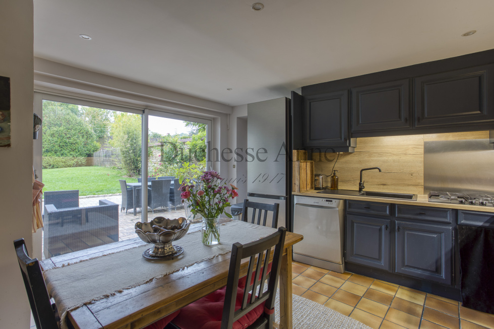 Située au coeur d'un village de charme à quelques minutes de SEPTEUIL, cette ancienne laiterie offre 190 m² environ de surface avec un beau potentiel d'aménagement. On entre sur un séjour chaleureux avec cheminée insert suivie par une cuisine équipée ouvrant sur le jardin par de grandes baies vitrées, cellier avec buanderie, belle pièce de près de 40 m² à aménager avec baies vitrées sur le jardin également. A l'étage: un dégagement distribue 3 belles chambres (13-18 et 23 m²) une salle de bains, une salle de douche à terminer et une autre pièce à aménager avec point d'eau (possibilté chambre), wc. Dépendance de 85 m² aménageable (devis de travaux à disposition) avec cheminée et belle charpente apparente (hauteur de 4.80 m) - Possibilité de faire un gîte ou une maison d'amis. Auvent pour voiture - Belle cave voûtée. Très bon classement énergétique : Pompe à chaleur, isolation des combles, double vitrage et ballon thermodynamique. Jardin clos de murs de 1797 m² piscinable. COUP DE COEUR A 1 HEURE DE PARIS.