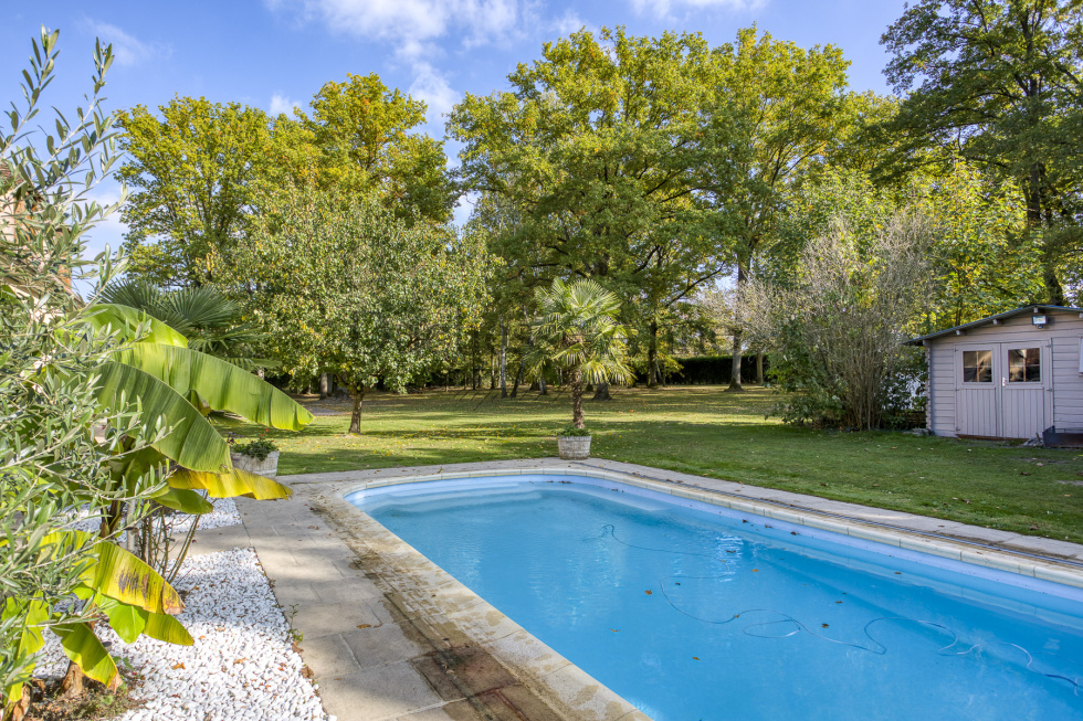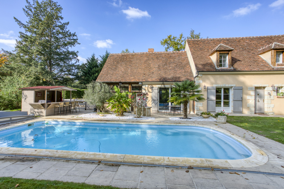 Grande propriété contemporaine construite à l’ancienne et au sein d’un parc arboré de 6 330 m² en lisière de forêt.