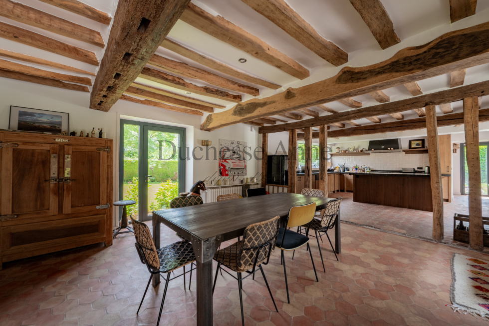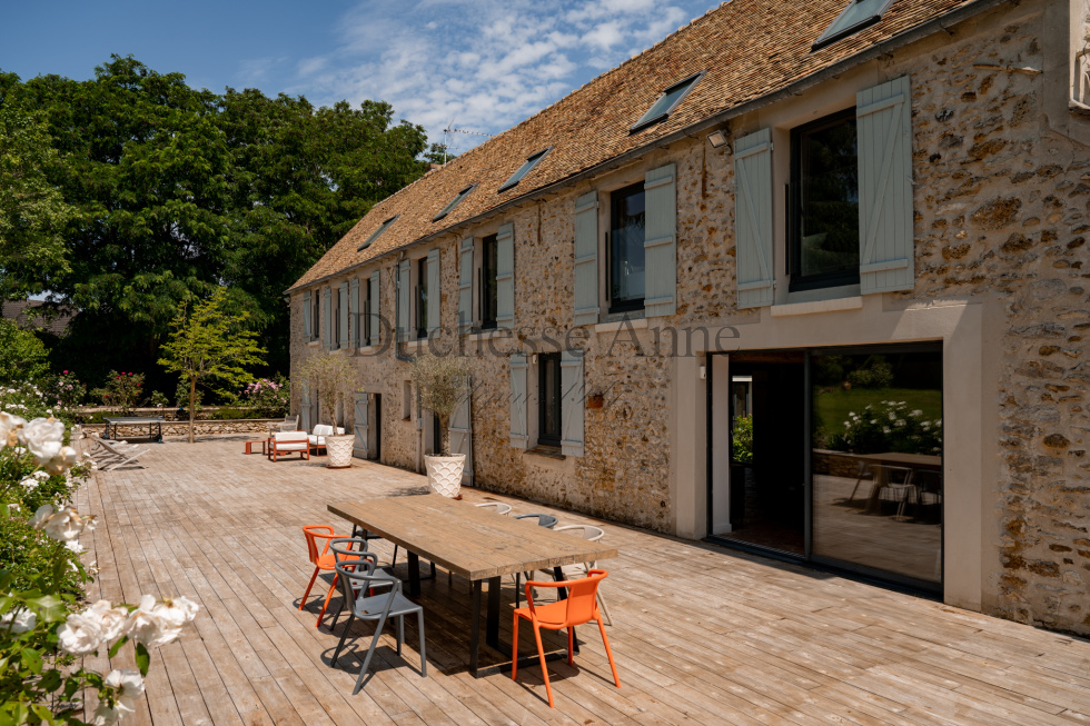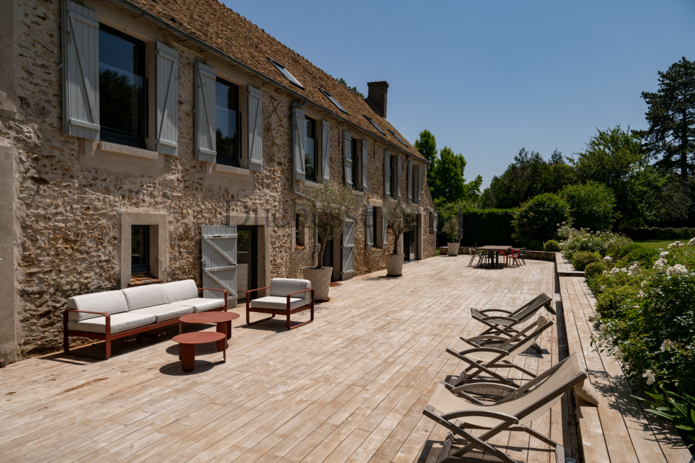 Grande propriété de charme à quelques minutes du centre du village et de la forêt, à pied, dans un cadre premium et au calme, entièrement restaurée avec goût et aux normes actuelles de confort. Terrain clos, arboré et paysagé de plus de 4 700 m² avec dépendances et piscine type couloir de nage. Garages fermés, espace détente vitré vers le jardin avec hammam et sauna. Vaste entrée amenant vers l’aile de très vastes espaces de réception et la suite parentale. Un salon chaleureux et intimiste avec cheminée, l’espace ouvert avec salle à manger et cuisine, accès à un salon d’étage hors normes avec cheminée, grandes hauteurs sous cette belle charpente apparente et de nombreuses ouvertures vitrées sur le parc. Suite parentale principale à l’écart comprenant une chambre spacieuse avec salle de bains et dressings. L’autre aile de la maison emmène vers les espaces dédiés aux enfants, chambres et salle de bain, vers la partie consacrée aux amis et la famille avec 2 suites parentales complètes et à l’écart (chambres, salles d’eau), une belle pièce dédiée au cinéma et aux jeux, grenier aménageable supplémentaire. Rénovation complète de cette belle bâtisse ancienne datant en partie du 17ème siècle respectant toute son authenticité et mélangeant le charme de l’ancien, des prestations haut de gamme et le confort moderne. Dans le village authentique de Montfort l’Amaury, écoles, commerces, transports et forêt.